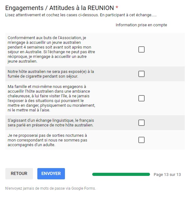 Une fois que vous aurez rempli toutes les pages, il vous suffit de soumettre vos réponses (cliquer sur la case ENVOYER)